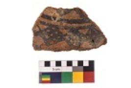 | Description / विवरण | Specimen of black on red ware with black decorative Horizontal lines and octahedron like lattice design geometric painting. |