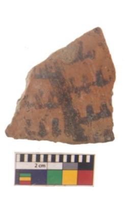 | Description / विवरण | Specimen of black on red ware with black decorative Leaf like design nature painting. |