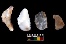 | Description / विवरण | There are n 4 cores. There are multi directional irregular scar pattern on both dorsal and ventral face of the cores. Some have blunted edges and some have round edges. |
