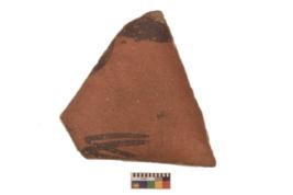 | Description / विवरण | Specimen of Potsherd black on red painted pottery. It is fine fabric in sharp contrast with painted design are executed in black pigment. |