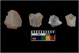 | Description / विवरण | There are n 4 flakes tool; there are multidirectional irregular scar pattern on them; made of short flakes and all four have tapering edges. |