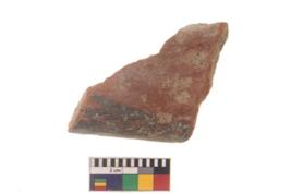 | Description / विवरण | Specimen of black on red ware with black decorative Curves lattice pattern geometric painting. |