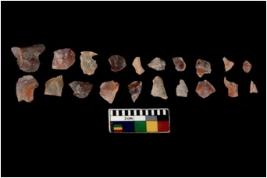 | Description / विवरण | Specimen of flakes chips with prominent flaking marks. It made up of a short flakes with sides trimmed. |