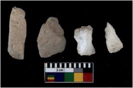 | Description / विवरण | There are n 4 flakes tool; there are large flakes with sides trimmed, Marks of secondary flaking are present on the both the faces.The dorsal is relatively flat. |