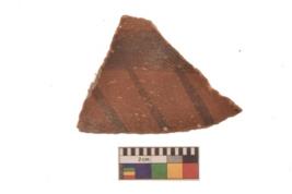 | Description / विवरण | Specimen of Potsherd black on red painted pottery. It is fine fabric in sharp contrast with painted design are executed in black pigment. |