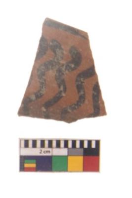 | Description / विवरण | Specimen of black on red ware with black decorative Wavy lines geometric painting. |