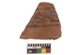 | Description / विवरण | Specimen of black on red ware with black decorative Lattice pattern geometric painting. |