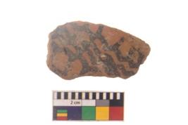 | Description / विवरण | Specimen of black on red ware with black decorative Wav lines with strokes geometric painting. |