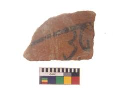 | Description / विवरण | Specimen of black on red ware with black decorative Curves geometric painting. |