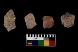 | Description / विवरण | There are n 4 flakes tool; there are multidirectional irregular scar pattern on them; made of short flakes and all four have tapering edges. |