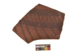 | Description / विवरण | Specimen of a Potsherd with black decorative geometric painting on it.It is set of two zigzag bands. |