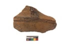 | Description / विवरण | Specimen of black on red ware with black decorative Wavy design and horizontal lines geometric painting. |