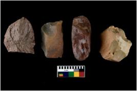 | Description / विवरण | There are n 4 utilized flakes. There are multi directional irregular scar pattern on both dorsal and ventral face of the flakes. three are tapering and broom marks, at one end and one has blunted edge. |