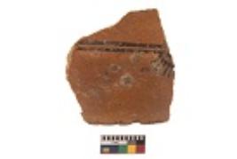 | Description / विवरण | Specimen of black on red ware with black decorative Symbol of sun and horizontal lines geometric and nature painting. |