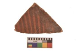 | Description / विवरण | Specimen of Potsherd black on red painted pottery. linear pattern |