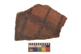 | Description / विवरण | Specimen of Potsherd black on red painted pottery. It is fine fabric in sharp contrast with painted design are executed in black pigment. |
