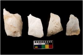 | Description / विवरण | Cores, with several broad fluted marks from almost all the sides indicating the detached blades from it. |