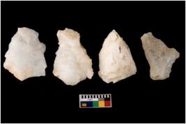 | Description / विवरण | Cores, with several broad fluted marks from almost all the sides indicating the detached blades from it. |