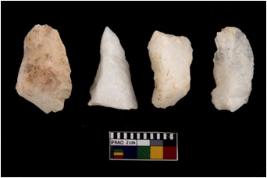 | Description / विवरण | Cores, with several broad fluted marks from almost all the sides indicating the detached blades from it. |