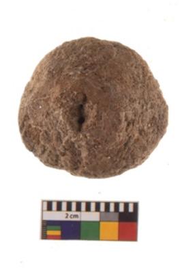 | Description / विवरण | Specimen of terracotta Wheel. It is red ware rounded shape with center perforation. |