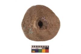 | Description / विवरण | Specimen of terracotta Wheel. It is red ware rounded shape with center perforation. |