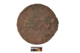 | Description / विवरण | Specimen of ground disc hopscotch made from a red ware. |