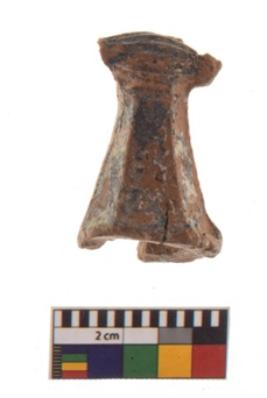 | Description / विवरण | Specimen of a Terracotta Pendant. It is made of red ware, fine fabric, well-fired. It is triangular in shape with rectangular cross section. |