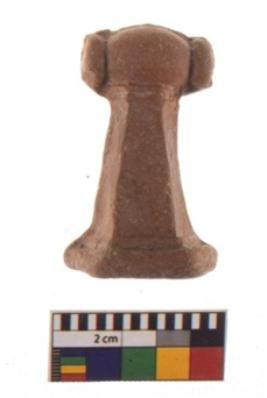 | Description / विवरण | Specimen of a Terracotta Pendant. It is made of red ware, fine fabric, well-fired. It is triangular in shape with rectangular cross section. The base of this object is flat and the hole for suspension is provided near the top. |