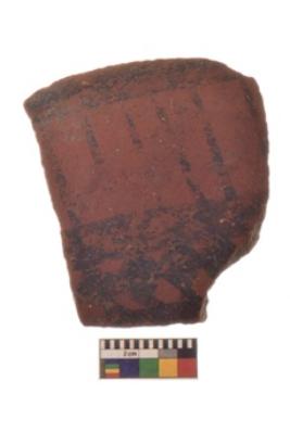 | Description / विवरण | Specimen of Potsherd black on red painted pottery. It is fine fabric in sharp contrast with painted design are executed in black pigment. |