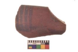 | Description / विवरण | Specimen of Potsherd black on red painted pottery. It is fine fabric in sharp contrast with painted design are executed in black pigment. |