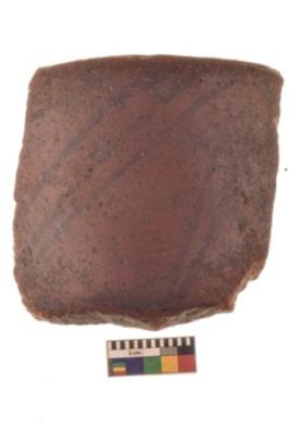 | Description / विवरण | Specimen of Potsherd black on red painted pottery. linear pattern |