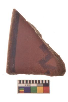 | Description / विवरण | Specimen of Potsherd black on red painted pottery. It is fine fabric in sharp contrast with painted design are executed in black pigment. |