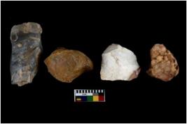 | Description / विवरण | There are n 4 utilized flakes. There are multi directional irregular scar pattern on both dorsal and ventral face of the flakes. Some of them are sharp and broom marks, and few are blunted at one end. |
