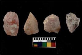 | Description / विवरण | There are n 4 flakes tool; there are multidirectional irregular scar pattern on them; made of short flakes and all four have tapering edges. |