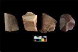 | Description / विवरण | There are n 4 utilized flakes. There are multi directional irregular scar pattern on both dorsal and ventral face of the flakes. Some of them are tapering and few are rounded at one end. |