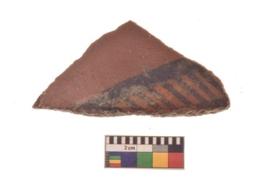 | Description / विवरण | Specimen of Potsherd black on red painted pottery. linear pattern |