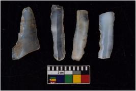 | Description / विवरण | There are n 4 flakes tool; there are flakes with sides trimmed, Marks of secondary flaking are present on the both the faces.The dorsal is relatively flat. |