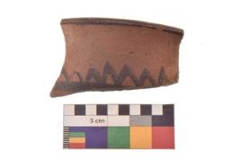 | Description / विवरण | Specimen of a Potsherd with black decorative geometric painting on it.It is set of two zigzag bands. |