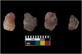 | Description / विवरण | There are n 4 flakes tool; there are multidirectional irregular scar pattern on them; made of short flakes and all four have tapering edges. |