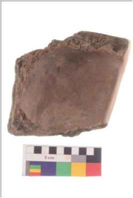 | Description / विवरण | Fragment of squarish incense burner with aeched edges and pinched corner; it is a well fired. |
