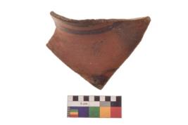 | Description / विवरण | Specimen of Potsherd black on red painted pottery. It is fine fabric in sharp contrast with painted design are executed in black pigment. |