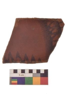 | Description / विवरण | Specimen of a Potsherd with black decorative geometric painting on it.It is set of two zigzag bands. |