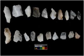 | Description / विवरण | There are n 20 flakes; there are multidirectional irregular scar pattern on them; made of short flakes, few are blades, one has pen pointed edge and few have tapering edges. |