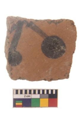| Description / विवरण | Specimen of black on red ware with black decorative Strokes and circles geometric painting. |