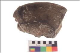 | Description / विवरण | Fragment of squarish incense burner with aeched edges and pinched corner; it is a well fired. |