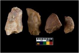 | Description / विवरण | There are n 4 utilized flakes. There are multi directional irregular scar pattern on both dorsal and ventral face of the flakes. Some of them are tapering and broken and few are sharp edges at one end. |