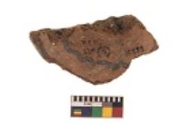 | Description / विवरण | Specimen of black on red ware with black decorative Wavy design geometric painting. |
