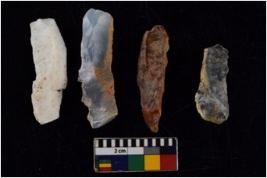 | Description / विवरण | There are n 4 Flakes; there are multidirectional irregular scar pattern on them. Some of them are tapering at one end. |