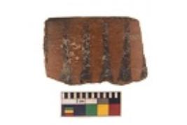 | Description / विवरण | Specimen of black on red ware with black decorative Group of elonagted vertical triangles geometric painting. |