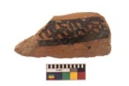 | Description / विवरण | Specimen of black on red ware with black decorative Lattice design geometric painting. |